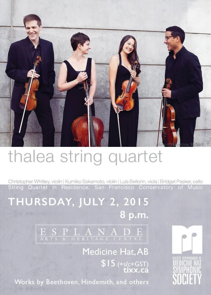 Come out and listen to a night of classical music, performed by Thalea String Quartet at the Esplanade on Thursday, July 2, 2015 at 8:00 PM. $15.00 + S/C, GST